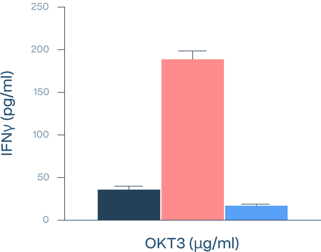 Ex vivo cytokine release using NRLs (A) and TILs (B) primed with OKT3. Ratio against IgG isotype control indicated more IFNγ producing cells from TILs when stimulated with anti-OXBT185. Anti-OXBT185 stimulation induced IFNγ production in TILs but not in NRLs. Moreover, anti-OXBT185 synergised with low-level CD3 stimulation to boost IFNγ production.