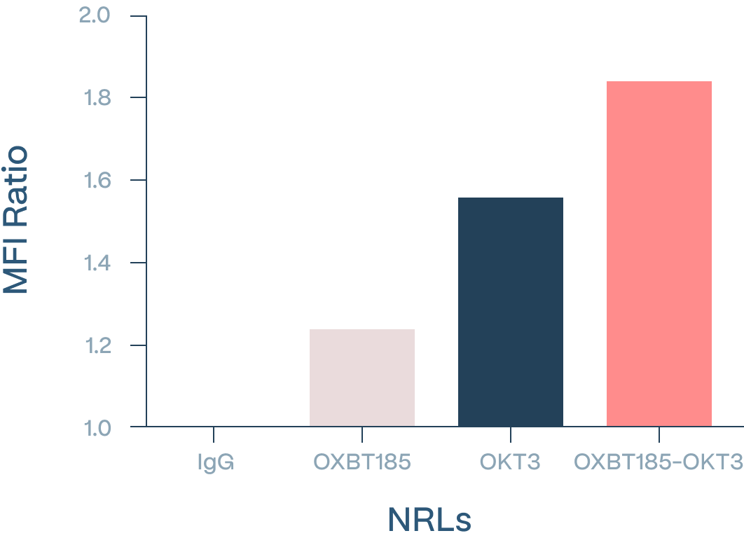 Functional anti-OXBT185 activates T cells